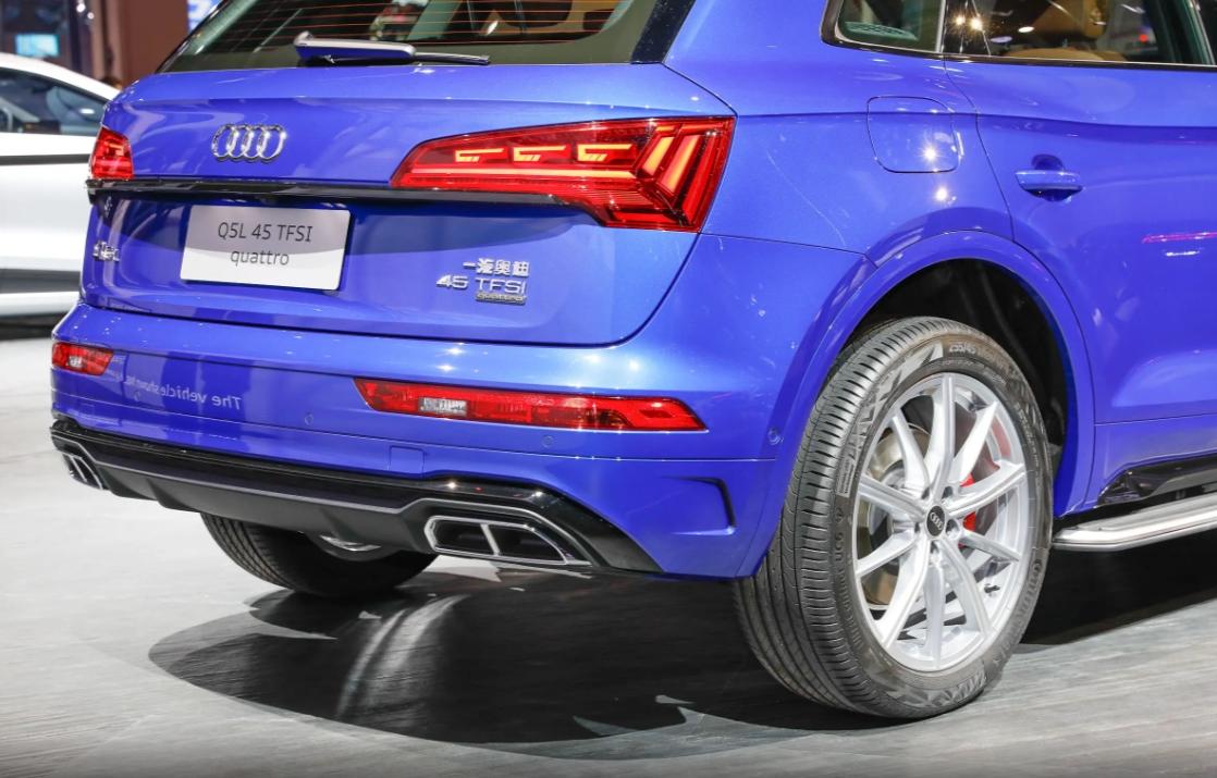 外觀方面,奧迪 Q5L 采用了奧迪家族式的設(shè)計(jì)語言,車身線條流暢,時(shí)尚大氣。前臉采用了大尺寸的進(jìn)氣格柵,搭配奧迪標(biāo)志性的四個(gè)圈標(biāo)志,使整個(gè)車頭看起來富有氣勢(shì)。車身側(cè)面的線條簡(jiǎn)潔流暢,配合大尺寸的輪轂,營(yíng)造出強(qiáng)烈的運(yùn)動(dòng)感。尾部設(shè)計(jì)圓潤(rùn)飽滿,車尾帶有精致的排氣裝飾,進(jìn)一步提升了車輛的時(shí)尚氣息。