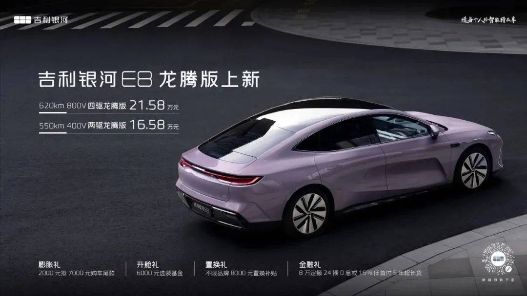 吉利銀河E8龍騰版分為單電機(jī)兩驅(qū)版和雙電機(jī)四驅(qū)版,其中四驅(qū)版采用800V高壓平臺,最大功率475kW,最大扭矩710Nm,零百加速僅需3.49秒,極速210km/h。在800V快充平臺下,可實現(xiàn)5分鐘充能180km,18分鐘充能10%至80%的效率。
