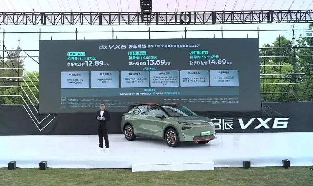 新款啟辰VX6推出了520 Air、520 Pro、520 Max三款車型,指導(dǎo)價14.19-15.99萬元,權(quán)益價在此基礎(chǔ)上下調(diào)13000元。官方還推出“6大歡樂權(quán)益”和“限時黃金禮”,進(jìn)一步降低購車門檻。新車外觀沒有變化,依舊采用鮮明的新能源設(shè)計語言。新增一款“不焦綠”配色,采取諧音的同時更增添年輕氣息。車身尺寸為4658*1890*1656mm,軸距2850mm,乘坐空間較舒適。