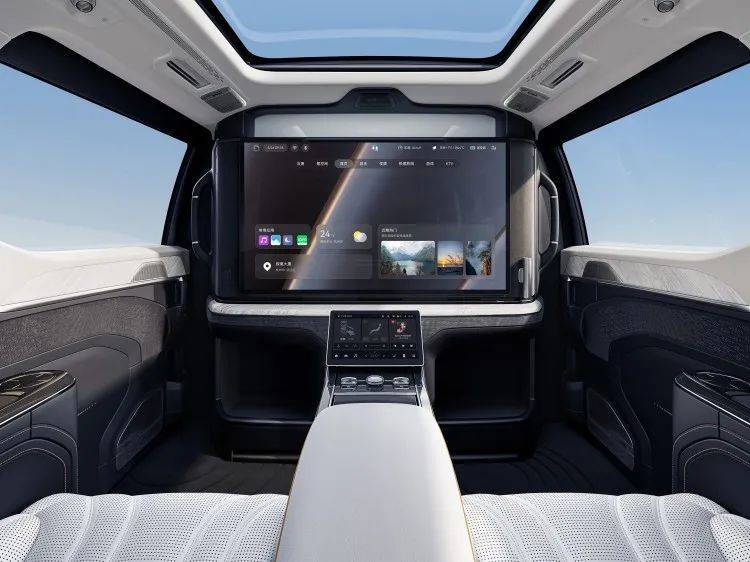 極氪009光輝的前后排帶有隔斷,隔斷處嵌入一臺 43 英寸4K智慧屏,提供冷熱冰箱、隱私玻璃、31揚聲器雅馬哈高級音響等舒適配置。為了保障乘客人身和財產(chǎn)安全,009光輝還擁有雙保險柜、隱私調(diào)光玻璃、無痕模式鏈接、7×24小時衛(wèi)星通訊、200m探測距離的激光雷達(dá)等硬核配置。